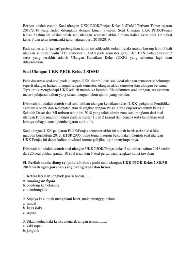 Kumpulan soal ulangan penjas kelas 3 semester 2 k13 revisi 2018. Soal ulangan ukk pjok/penjas kelas 2 tahun ini adalah salah satu ulangan semester akhir dimana kalian akan naik ketingkat kelas 3 dan akan memasuki tahun ajaran baru 2018/2019. Soal penjas kelas 6 sdmi 2019 lengkap dengan kunci jawaban. 2 rpp 1 lembar smp kelas 8. Sumber soal ukk pjok kelas 3 sd/mi semester 2. Download soal uh pjok kelas 3 tema 6 semester 2 k13 revisi 2018. Alat evaluasi ini berupa soal ulangan harian kelas 3 semester 2. Semoga soal penjaskes smp kelas 9 semester 2 ini dapat bermanfaat. Contoh soal ulangan harian pkn kelas 3 sd semester 2. 3 kisi kisi soal sd mi lengkap. Soal pjok kelas 3 semester 2 dan kunci jawabannya khususnya materi pendidikan olahraga, jasmani dan kesehatan (pjok). Sehingga bisa menjadi sebuah ringkasan belajar ataupun rangkuman soal dalam rangka menghadapi pekan ujian akhir semester satu. Soal dan jawaban yang dibahas berikut hanyalah sebagai referensi bahan belajar bagi siswa dan guru dan orang tua dalam membimbing.